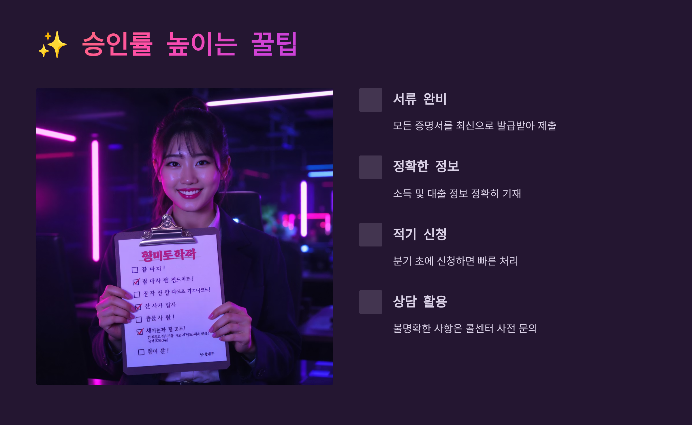 실패 사례도 참고하세요. A 씨는 서류 준비 부실로 3번 연속 탈락했어요. B 씨는 소득 증빙을 제대로 못해 탈락했고요. C 씨는 이직 후 신고를 안 해서 지원이 중단되었어요. D 씨는 대출 연체로 자격을 상실했어요. 이런 실수를 피하면 여러분도 충분히 혜택을 받을 수 있어요. 제도를 잘 활용하면 경제적 부담을 크게 줄일 수 있답니다! 💰
