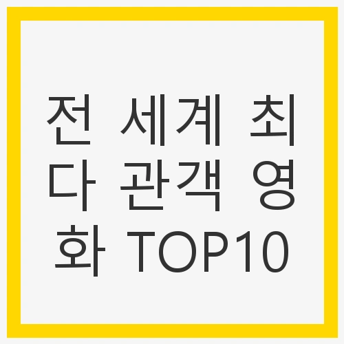 이번에 소개할 영화 목록은 전 세계 박스오피스 기록을 바탕으로 하였으며, 각 영화가 관객에게 어떤 영향을 미쳤는지 살펴보는 기회가 되기를 바랍니다. 각각의 영화는 다양한 장르와 스타일을 보여주며, 그 속에서 많은 관객의 사랑을 받을 수 있었던 이유를 찾아보는 것이 흥미로울 것입니다. 이제 전 세계 최다 관객 영화 TOP10을 살펴보겠습니다.