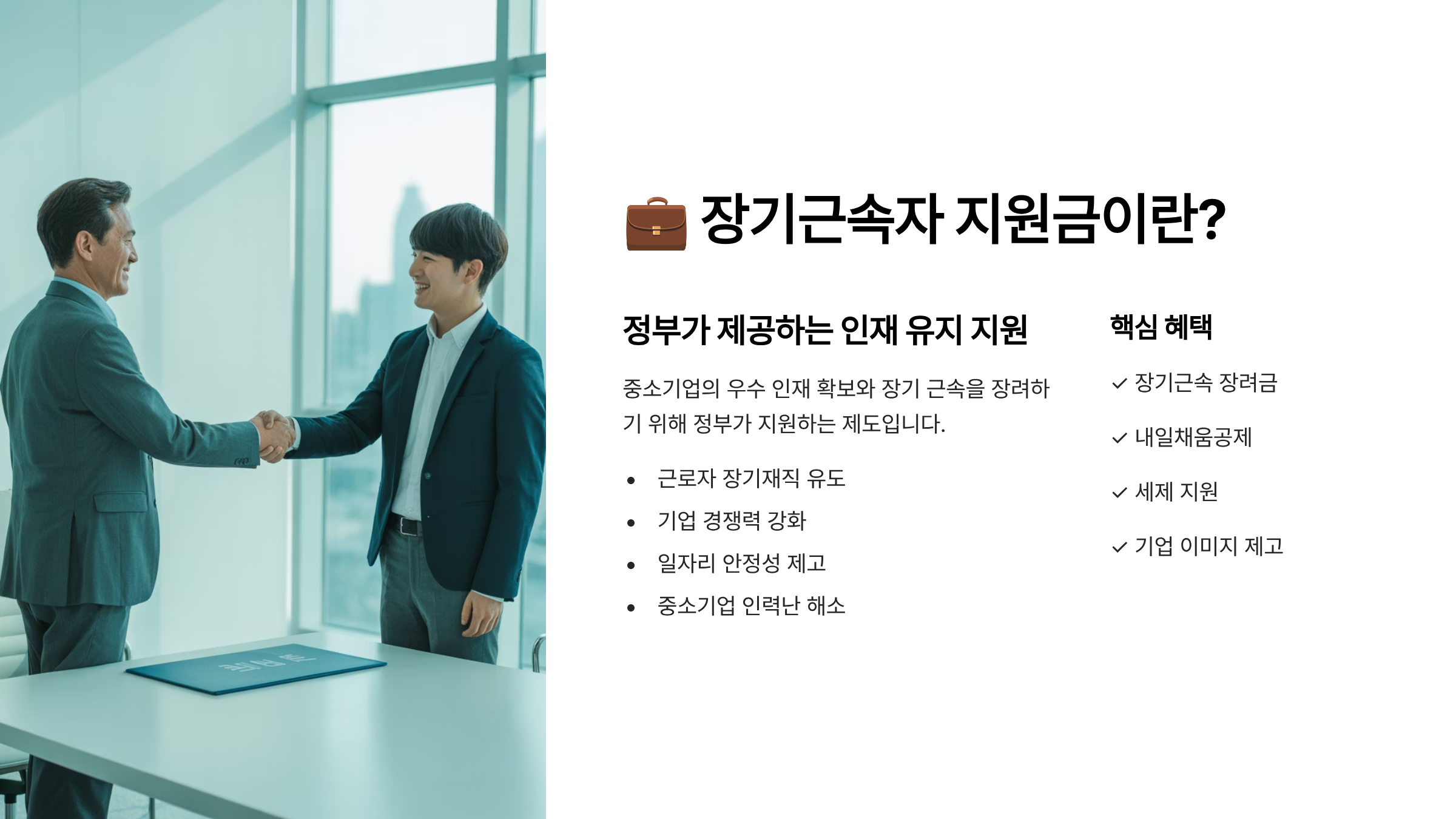 2025년 중소기업에서 일하는 장기근속자들에게 희소식이 있어요! 정부가 중소기업의 인재 유출을 막고 근로자들의 안정적인 생활을 지원하기 위해 다양한 지원금 제도를 대폭 확대했답니다. 특히 올해는 지원 규모와 대상이 크게 늘어나서 더 많은 분들이 혜택을 받을 수 있게 되었어요.